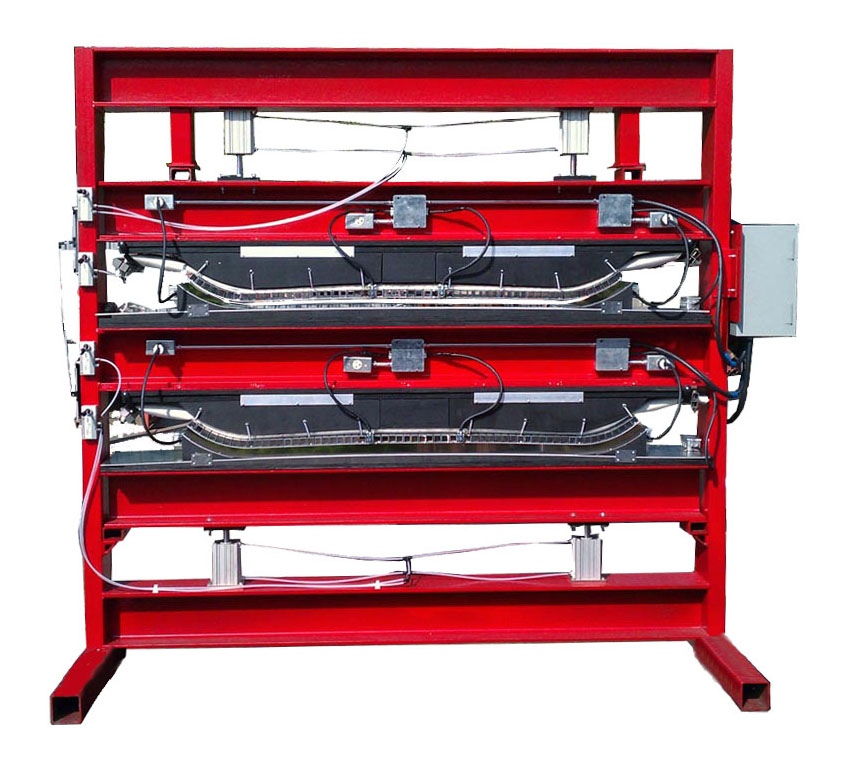 It is for the demanding user that the needs the utmost capacity. Press 2 snowboards or 2 pair of skis at the same time in the same press. This press is our most fully featured dual cavity production laminating press that is based on the presses Lindsay designed for Powderstick Snowboards, Option Snowboards and dozens of other companies since the mid 1980's. It features heated top and bottom forms that are controlled by a digital PID control unit that allows various ramp and heat cycles to be programmed or simple set temperature operation.